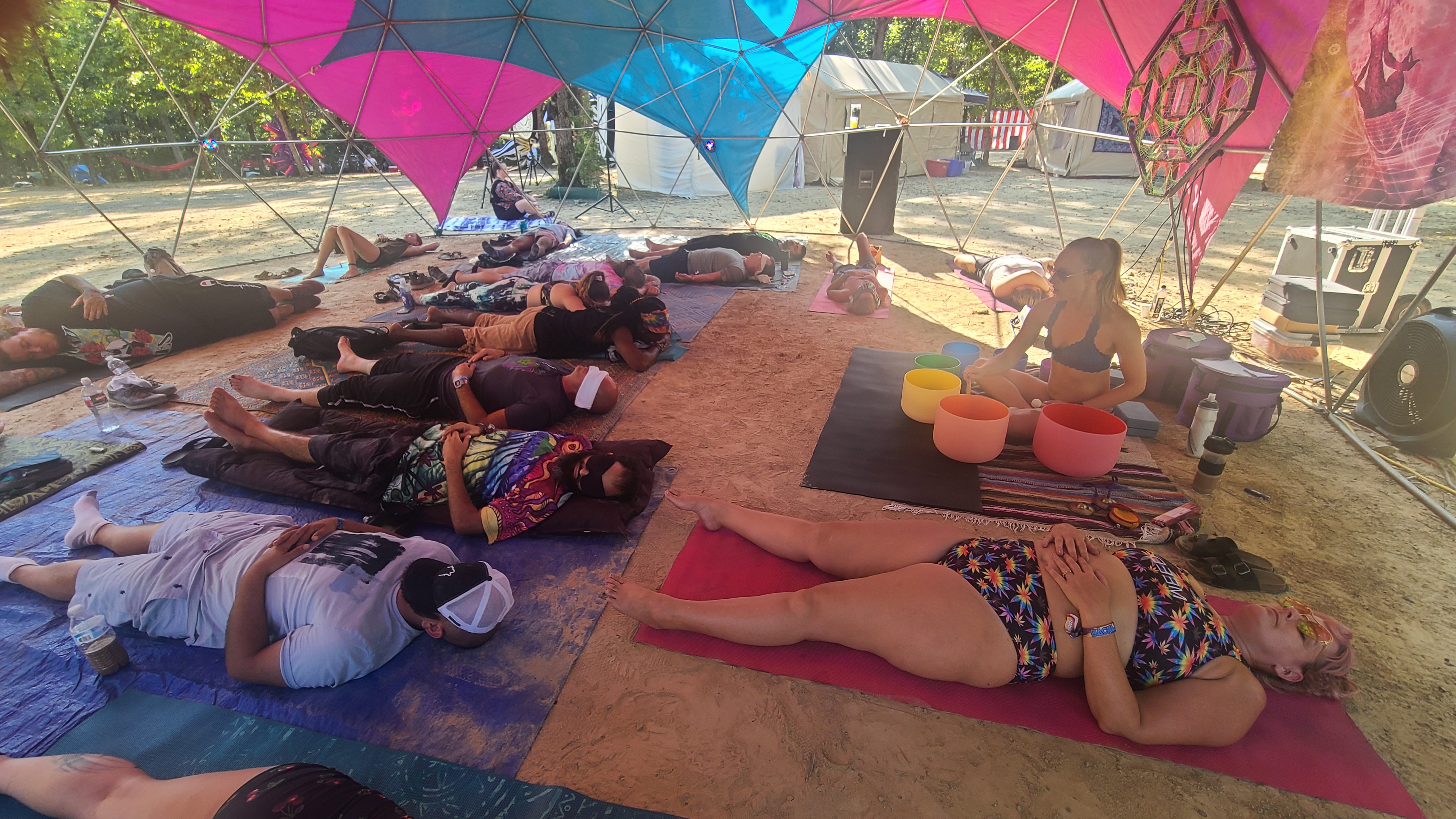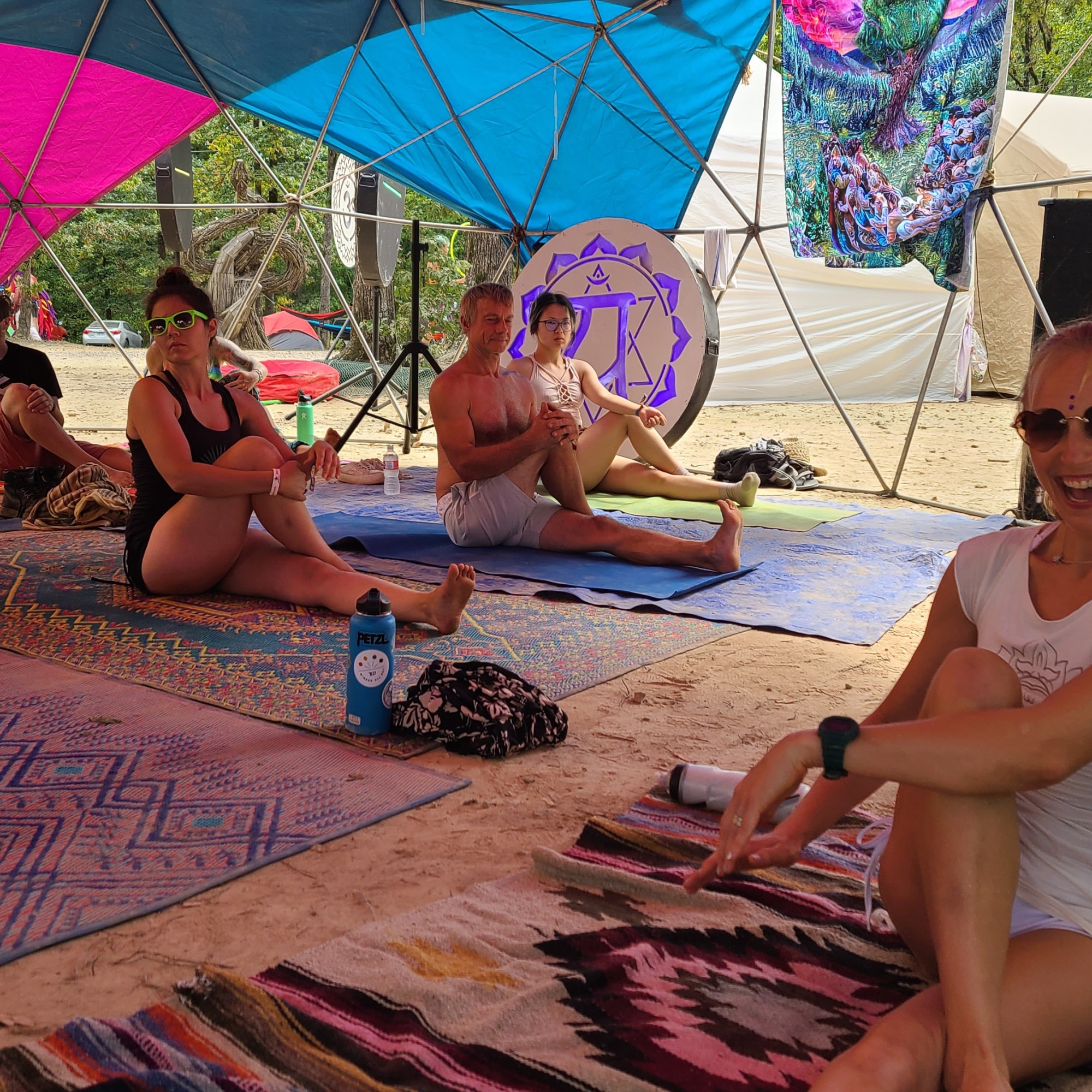 As the Resident Yogi and Workshop Coordinator, I kicked off the festival by leading a guided meditation from the main stage before music started Thursday night.